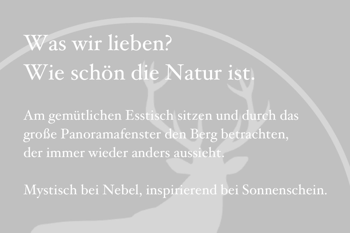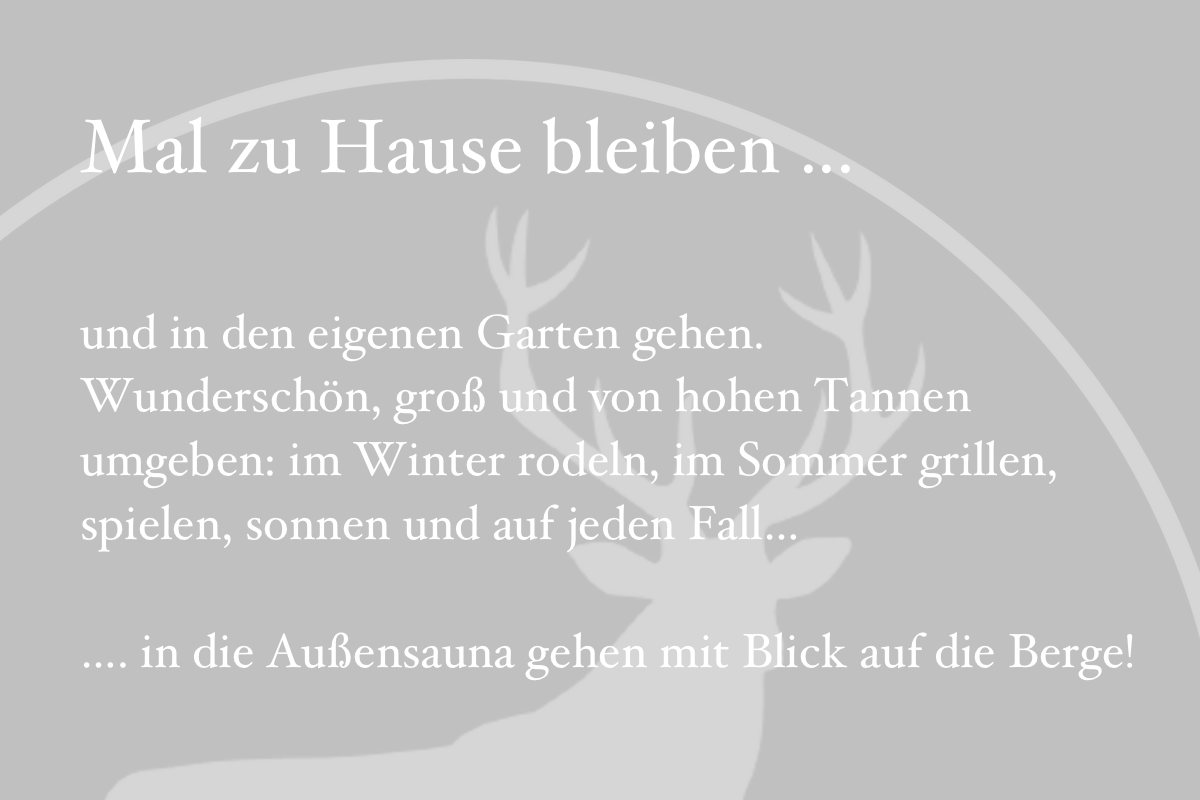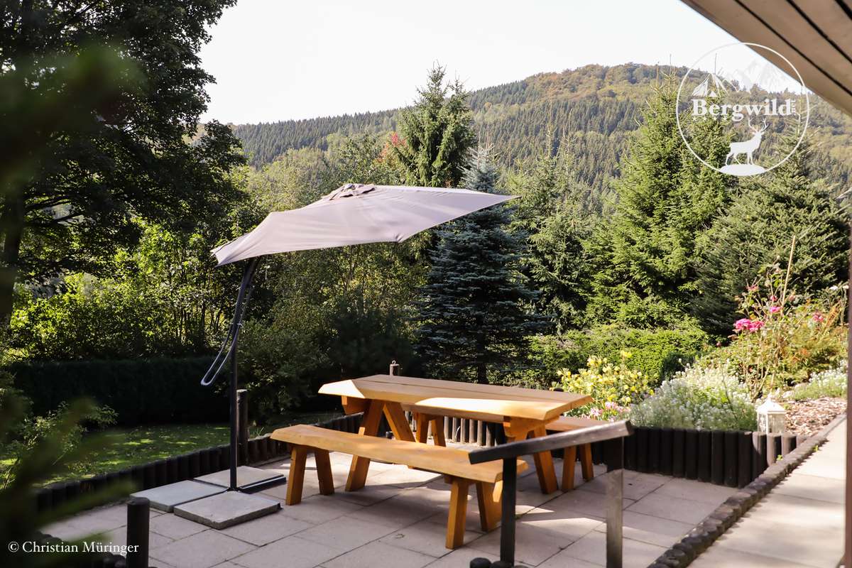 Von hohen Tannen umgeben lädt der 775 qm² liebevoll angelegte Garten zum Verweilen ein. Besonders schön ist der traumhafte Blick in die atemberaubende Landschaft. Hier kann man zur Ruhe kommen, bei einem Waldspaziergang frische Luft tanken und im Einklang mit sich und der Natur sein. Egal ob im Frühling, Sommer, Herbst oder natürlicher im märchenhafter Winter: Im Haus Bergwild genießt du einfach eine gute Zeit.